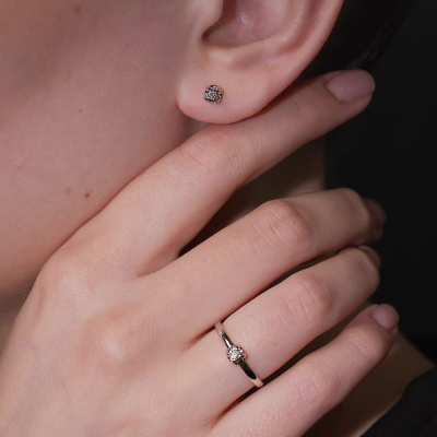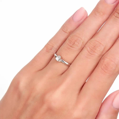 Кольцо с 1 бриллиантом природным, 0.05 карат, огранка круг 57 граней, цвет 3, чистота 6, тип огранки А; Белое золото 585 пробы.