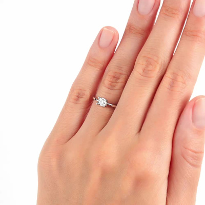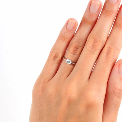Кольцо с 1 бриллиантом природным, 0.259 карат, огранка круг 57 граней, цвет 4, чистота 5, тип огранки А; Белое золото 585 пробы.