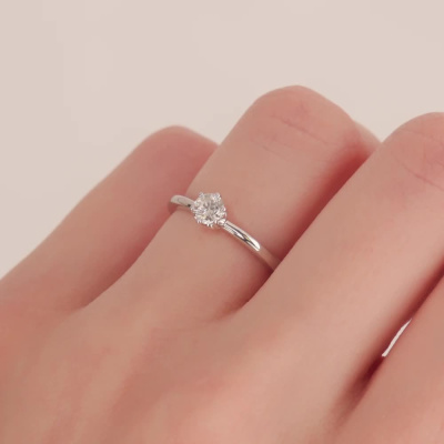 Кольцо с 1 бриллиантом природным, 0.28 карат, огранка круг 57 граней, цвет 4, чистота 6, тип огранки А; Белое золото 585 пробы.