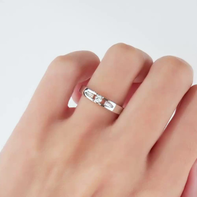 Кольцо с 1 бриллиантом природным, 0.08 карат, огранка круг 57 граней, цвет 4, чистота 6, тип огранки А; Белое золото 585 пробы.