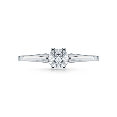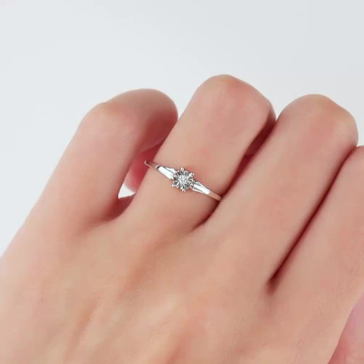 Кольцо с 1 бриллиантом природным, 0.02 карат, огранка круг 57 граней, цвет 4, чистота 5, тип огранки А; Белое золото 585 пробы.
