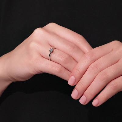 Кольцо с 1 бриллиантом природным, 0.28 карат, огранка круг 57 граней, цвет 4, чистота 6, тип огранки А; Белое золото 585 пробы.