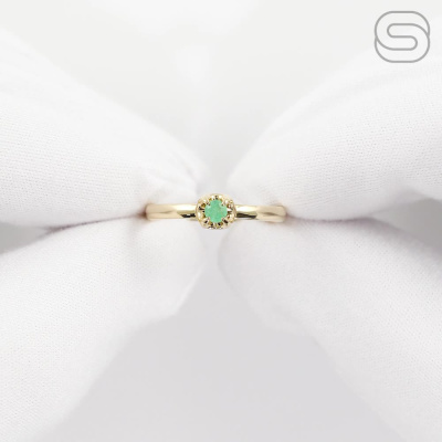 Кольцо с 1 изумрудом природным, 0.06 карат, цвет 3, чистота 3, тип огранки В; Желтое золото 585 пробы.