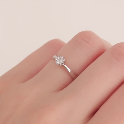 Кольцо с 1 бриллиантом природным, 0.18 карат, огранка круг 57 граней, цвет 3, чистота 6, тип огранки А; Белое золото 585 пробы.