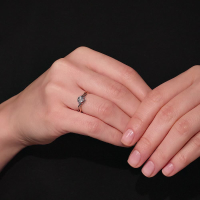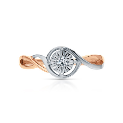 Кольцо с 1 бриллиантом природным, 0.03 карат, огранка круг 57 граней, цвет 4, чистота 5, тип огранки А; Розовое и белое золото 585 пробы.