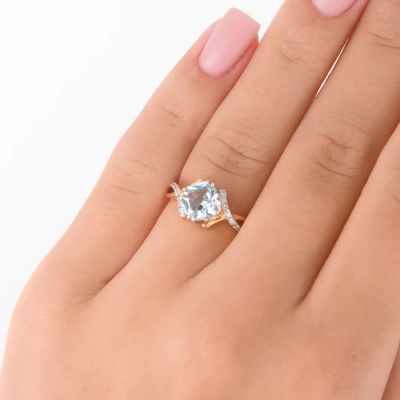 Кольцо с 20 бриллиантами природными, 0.03 карат, огранка круг 17 граней, цвет 2, чистота 2, тип огранки Б; 1 топазом скай природным, 1.72 карат; Розовое золото 585 пробы.