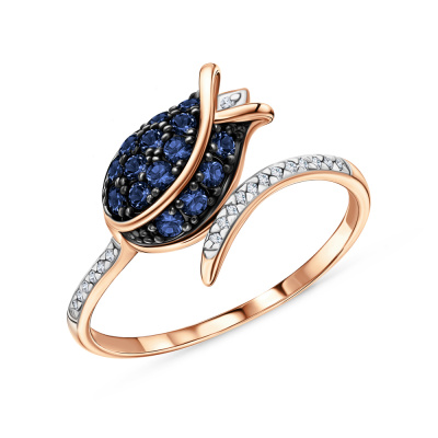 Кольцо с 20 бриллиантами природными, 0.04 карат, огранка круг 17 граней, цвет 2, чистота 2, тип огранки А; 15 сапфирами природными, 0.29 карат, цвет 2, чистота 2, тип огранки В; Розовое золото 585 пробы.