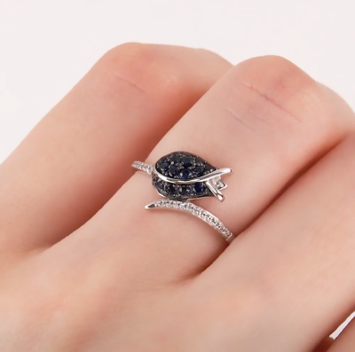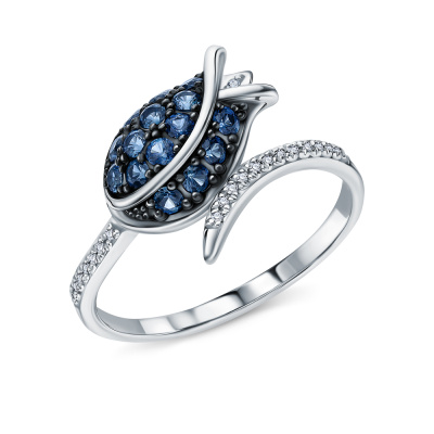 Кольцо с 20 бриллиантами природными, 0.03 карат, огранка круг 17 граней, цвет 2, чистота 2, тип огранки Б; 15 сапфирами природными, 0.3 карат, цвет 2, чистота 2, тип огранки В; Белое золото 585 пробы.