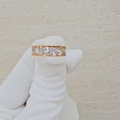 Кольцо с 32 бриллиантами природными, 0.054 карат, огранка круг 17 граней, цвет 2, чистота 2, тип огранки Б; Розовое золото 585 пробы.