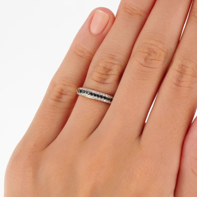 Представляем вам кольцо из розового золота 585 пробы, которое обязательно станет ярким акцентом в вашей коллекции украшений. Кольцо украшено 36 белыми бриллиантами общим весом 0.08 карат, с огранкой в 17 граней. Бриллианты имеют цвет — 2 и чистоту — 2, что придает им искрящийся блеск. Тип огранки Б придает кольцу элегантность и изысканность. Кольцо также украшено 12 черными бриллиантами общим весом 0.1 карат, с огранкой в 57 граней. Черные бриллианты имеют цвет — 7 и чистоту — 6, что создает контраст и уникальность дизайна. Это кольцо станет прекрасным подарком для возлюбленной или дополнит коллекцию украшений утонченным и стильным аксессуаром.