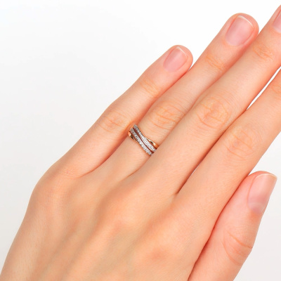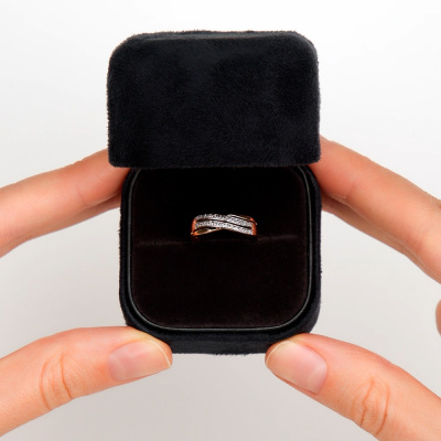 Кольцо с 24 бриллиантами природными, 0.053 карат, огранка круг 17 граней, цвет 2, чистота 2, тип огранки Б; Розовое золото 585 пробы.