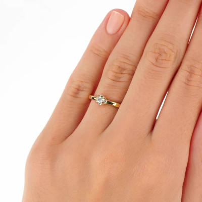 Кольцо с 1 бриллиантом природным, 0.05 карат, огранка круг 57 граней, цвет 3, чистота 6, тип огранки А; Желтое золото 585 пробы.