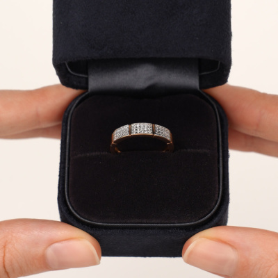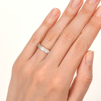 Кольцо с 45 бриллиантами природными, 0.112 карат, огранка круг 17 граней, цвет 2, чистота 2, тип огранки А; Розовое золото 585 пробы.