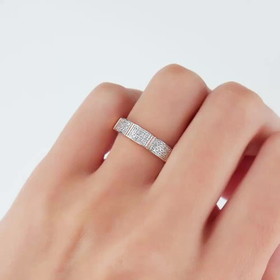 Кольцо с 45 бриллиантами природными, 0.13 карат, огранка круг 17 граней, цвет 2, чистота 2, тип огранки А; Розовое золото 585 пробы.