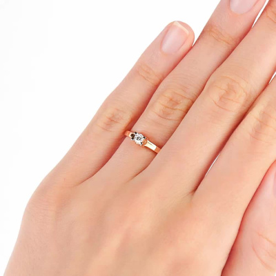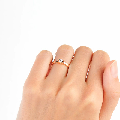 Кольцо с 1 бриллиантом природным, 0.115 карат, огранка круг 57 граней, цвет 4, чистота 6; Розовое золото 585 пробы.