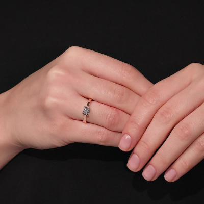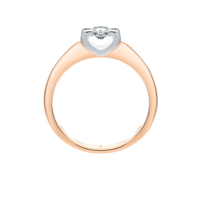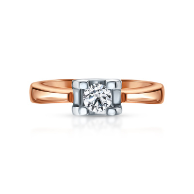 Кольцо с 1 бриллиантом природным, 0.19 карат, огранка круг 57 граней, цвет 3, чистота 6, тип огранки А; Розовое и белое золото 585 пробы.