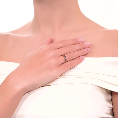 Кольцо с 10 бриллиантами природными, 0.01 карат, огранка круг 17 граней, цвет 2, чистота 2, тип огранки А; Розовое золото 585 пробы.