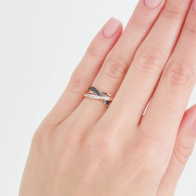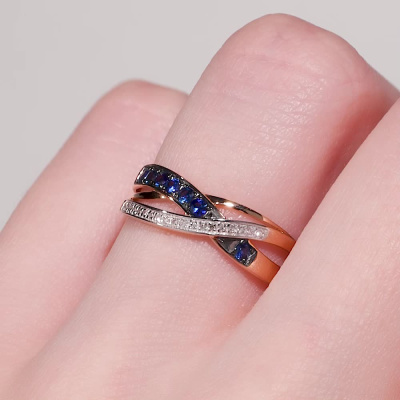 Кольцо с 19 бриллиантами природными, 0.03 карат, огранка круг 17 граней, цвет 2, чистота 2, тип огранки А; 7 сапфирами природными, 0.18 карат, цвет 2, чистота 2, тип огранки В; Розовое золото 585 пробы.