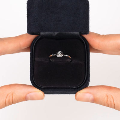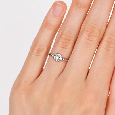 Кольцо с 1 бриллиантом природным, 0.022 карат, огранка круг 57 граней, цвет 3, чистота 6, тип огранки А; Белое золото 585 пробы.