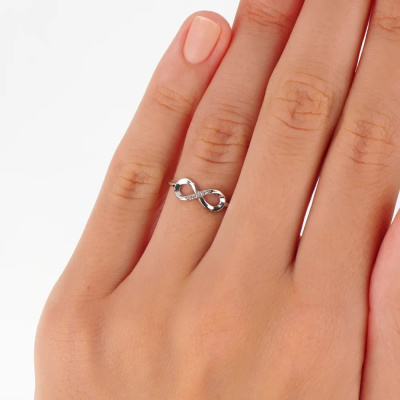 Кольцо с 5 бриллиантами природными, 0.009 карат, огранка круг 17 граней, цвет 2, чистота 2, тип огранки Б; Белое золото 585 пробы.