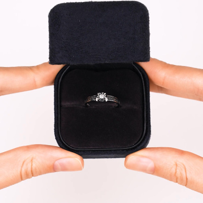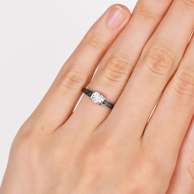 Золотое кольцо с бриллиантом природным и бриллиантами черными природными