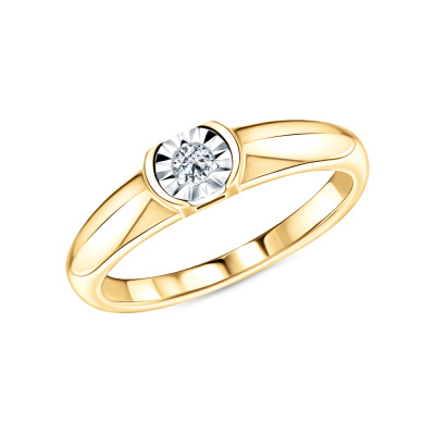 Кольцо с 1 бриллиантом природным, 0.04 карат, огранка круг 57 граней, цвет 3, чистота 5, тип огранки А; Желтое золото 585 пробы.