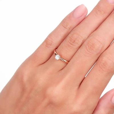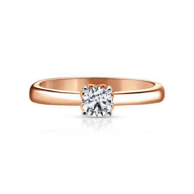 Кольцо с 1 бриллиантом природным, 0.18 карат, огранка круг 57 граней, цвет 3, чистота 6, тип огранки А; Розовое золото 585 пробы.