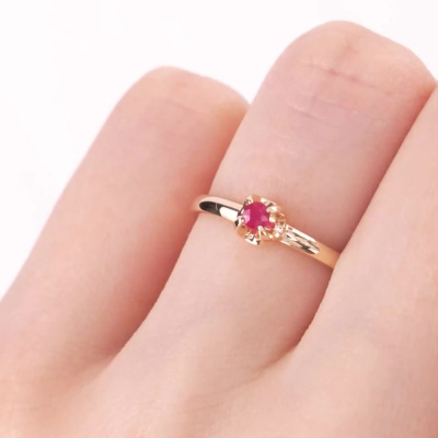 Кольцо «Бриллианты Якутии» с 1 рубином, 0.099 карат, цвет 2, чистота 2, тип огранки В; Розовое золото 585 пробы.