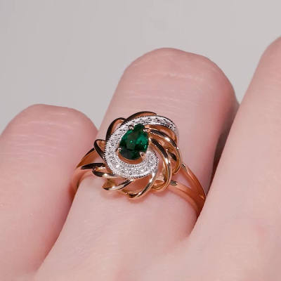 Золотое кольцо с бриллиантами природными и изумрудом выращенным