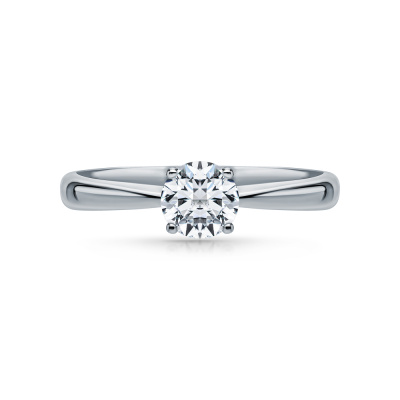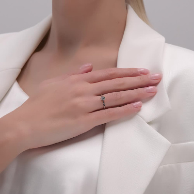 Кольцо с 1 бриллиантом природным, 0.41 карат, огранка круг 57 граней, цвет 4, чистота 5, тип огранки А; Белое золото 585 пробы.