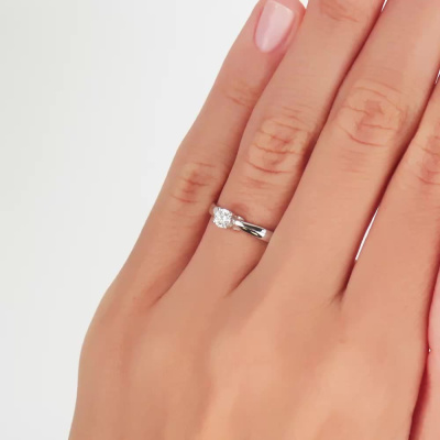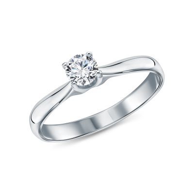Кольцо с 1 бриллиантом природным, 0.18 карат, огранка круг 57 граней, цвет 4, чистота 5, тип огранки А; Белое золото 585 пробы.
