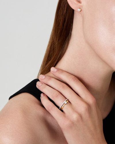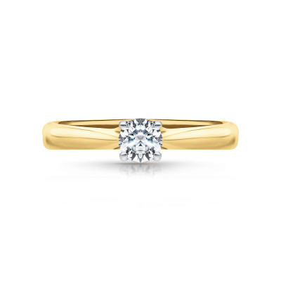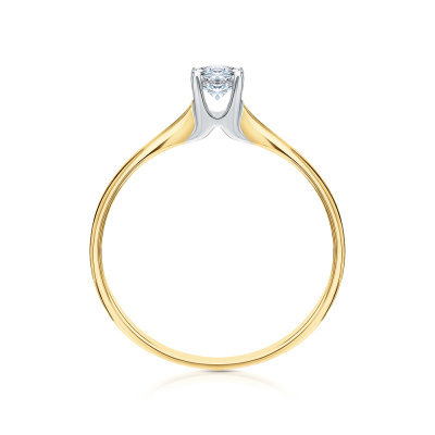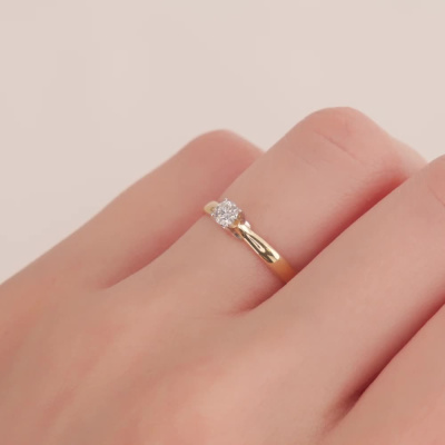 Кольцо с 1 бриллиантом природным, 0.19 карат, огранка круг 57 граней, цвет 4, чистота 5, тип огранки А; Желтое золото 585 пробы.