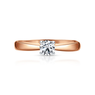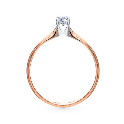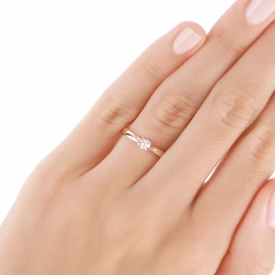 Кольцо с 1 бриллиантом природным, 0.16 карат, огранка круг 57 граней, цвет 4, чистота 6, тип огранки А; Розовое золото 585 пробы.