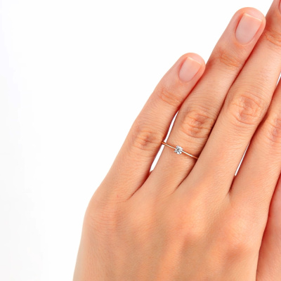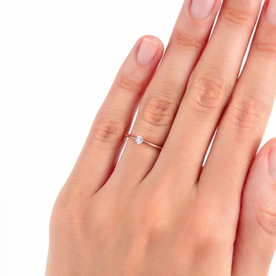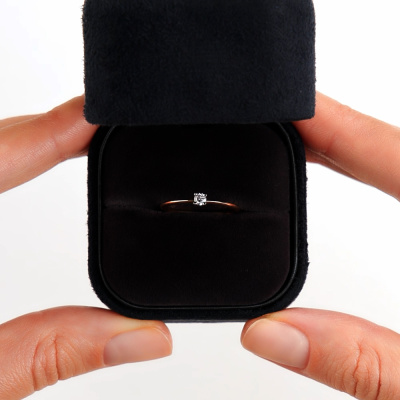 Кольцо с 1 бриллиантом природным, 0.071 карат, огранка круг 57 граней, цвет 3, чистота 5, тип огранки А; Розовое золото 585 пробы.