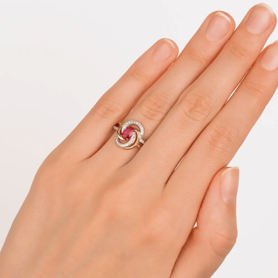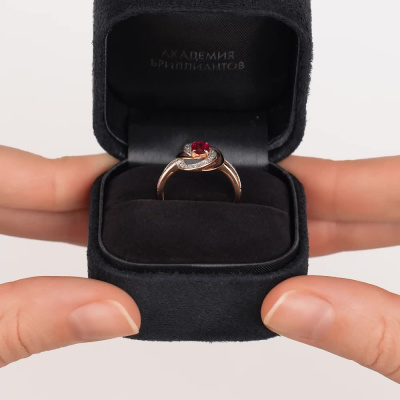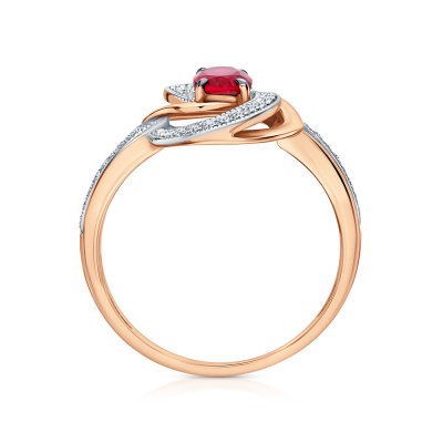 Золотое кольцо с бриллиантами природными и рубином выращенным