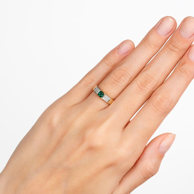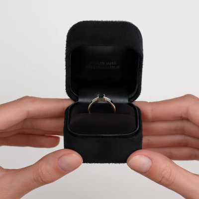 Золотое кольцо с бриллиантами природными и изумрудом выращенным