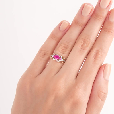 Это изящное золотое кольцо из розового золота с ярким рубином - идеальное украшение для тех, кто ценит элегантность и стиль. Кольцо имеет прекрасно сбалансированный дизайн, который подчеркивает красоту рубина и придает ему особый блеск. Изысканные детали и внимание к каждой мелочи делают это кольцо по-настоящему уникальным. Оно станет прекрасным дополнением к вашему образу и привлечет восхищенные взгляды окружающих. Позвольте этому кольцу стать символом вашей индивидуальности и стиля.