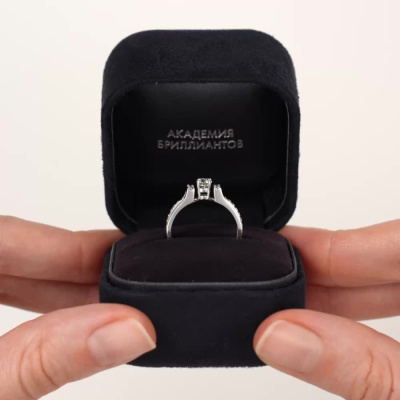 Кольцо с 1 бриллиантом природным, 0.249 карат, огранка круг 57 граней, цвет 4, чистота 6; 6 бриллиантами природными, 0.071 карат, огранка круг 57 граней, цвет 4, чистота 6; 12 бриллиантами природными, 0.088 карат, огранка круг 57 граней, цвет 4, чистота 6; Белое золото 585 пробы.