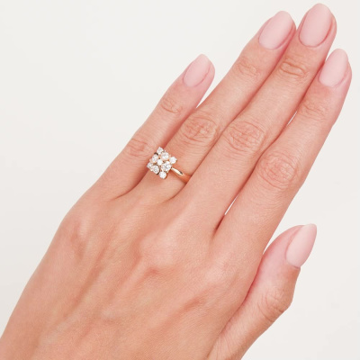 Кольцо с 4 бриллиантами природными, 0.31 карат, огранка круг 57 граней, цвет 3, чистота 6, тип огранки А; 4 бриллиантами природными, 0.19 карат, огранка круг 57 граней, цвет 3, чистота 6, тип огранки А; 1 бриллиантом природным, 0.04 карат, огранка круг 57 граней, цвет 3, чистота 6, тип огранки А; Белое золото 585 пробы.