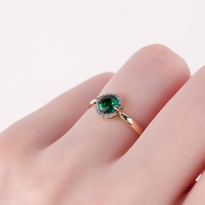 Золотое кольцо с бриллиантами природными и изумрудом выращенным
