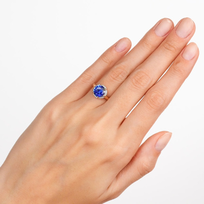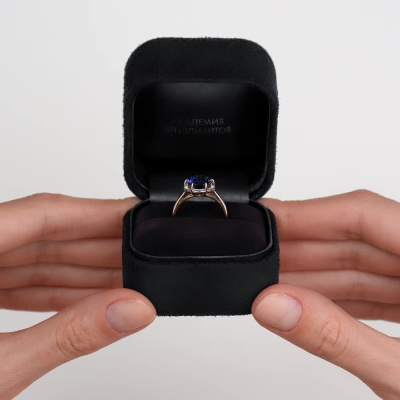 Золотое кольцо с бриллиантами природными и сапфирами выращенными
