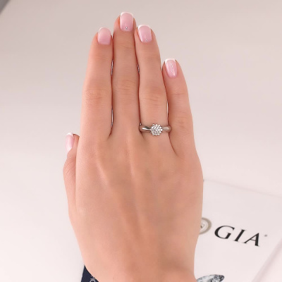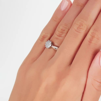 Кольцо с 19 бриллиантами природными, 0.18 карат, огранка круг 57 граней, цвет 4, чистота 6, тип огранки А; Белое золото 585 пробы.