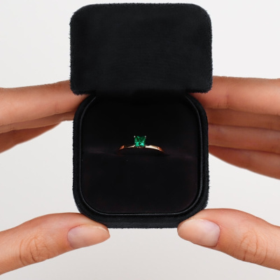Кольцо с 1 гидротермальным изумрудом, 0.291 карат; Розовое золото 585 пробы.