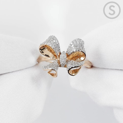 Кольцо с 125 бриллиантами, 0.26 карат, огранка круг 17 граней, цвет 2, чистота 3, тип огранки Б; Розовое золото 585 пробы.