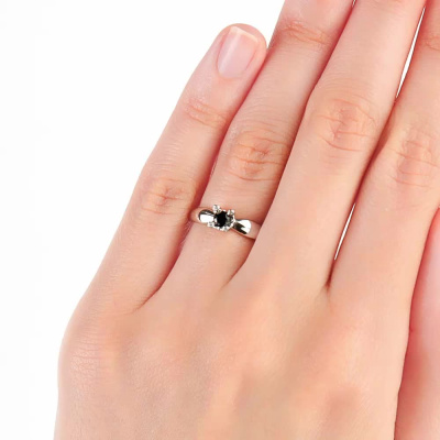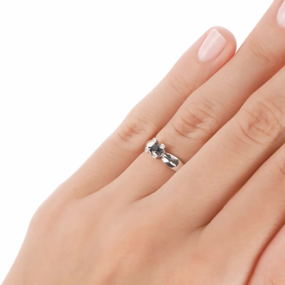 Кольцо с 4 бриллиантами природными, 0.009 карат, огранка круг 17 граней, цвет 2, чистота 2, тип огранки Б; 1 сапфиром природным, 0.15 карат, цвет 2, чистота 2, тип огранки В; Белое золото 585 пробы.