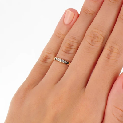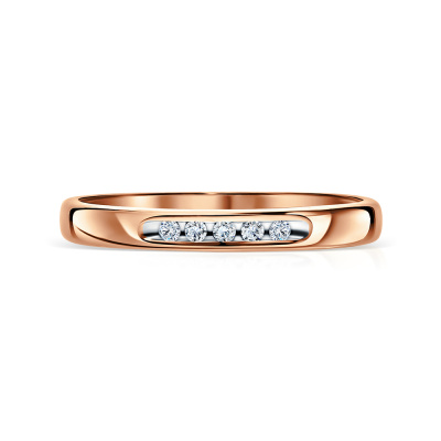 Кольцо с 5 бриллиантами природными, 0.03 карат, огранка круг 57 граней, цвет 3, чистота 6, тип огранки А; Розовое золото 585 пробы.