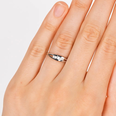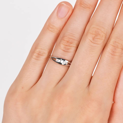 Кольцо с 1 бриллиантом природным, 0.02 карат, огранка круг 57 граней, цвет 3, чистота 6, тип огранки А; 2 бриллиантами природными, 0.02 карат, огранка круг 57 граней, цвет 3, чистота 6, тип огранки А; 2 бриллиантами природными, 0.01 карат, огранка круг 57 граней, цвет 3, чистота 6, тип огранки А; Белое золото 585 пробы.