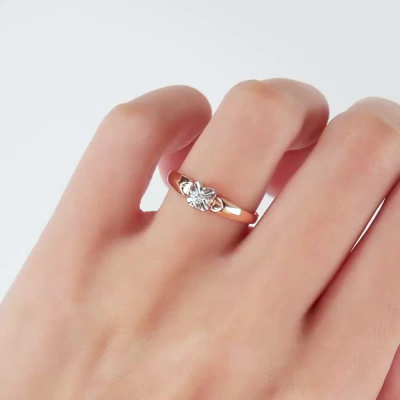 Кольцо с 1 бриллиантом природным, 0.07 карат, огранка круг 57 граней, цвет 3, чистота 6, тип огранки А; Розовое золото 585 пробы.