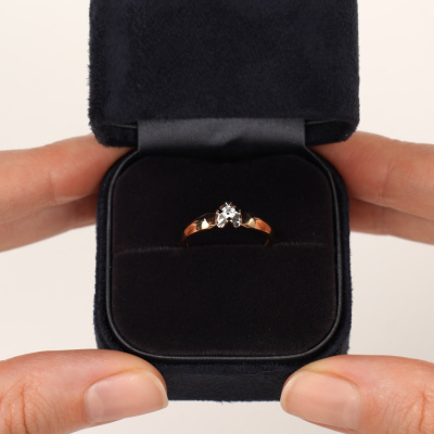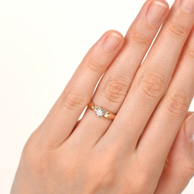 Кольцо с 1 бриллиантом природным, 0.071 карат, огранка круг 57 граней, цвет 3, чистота 6, тип огранки А; Розовое золото 585 пробы.