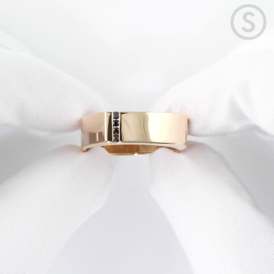 Кольцо с 4 бриллиантами черными природными облагороженными, 0.06 карат, огранка круг 57 граней, цвет 7, чистота 6, тип огранки А; Розовое золото 585 пробы.